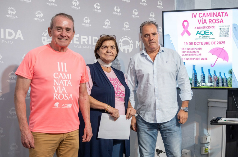 La IV Caminata Vía Rosa, organizada por la Asociación Club Deportivo Caminos Romanos en beneficio de la Asociación Oncológica Extremeña (AOEx), unirá deporte y solidaridad el próximo 19 de octubre en Mérida con una marcha que saldrá desde el Circo Romano y que recorrerá 3,9 kilómetros