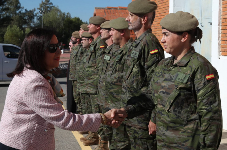 La ministra de Defensa, Margarita Robles, ha realizado un recorrido por las instalaciones del Centro de Formación de Tropa y ha compartido impresiones con los alumnos, quienes le han contado sus inquietudes.