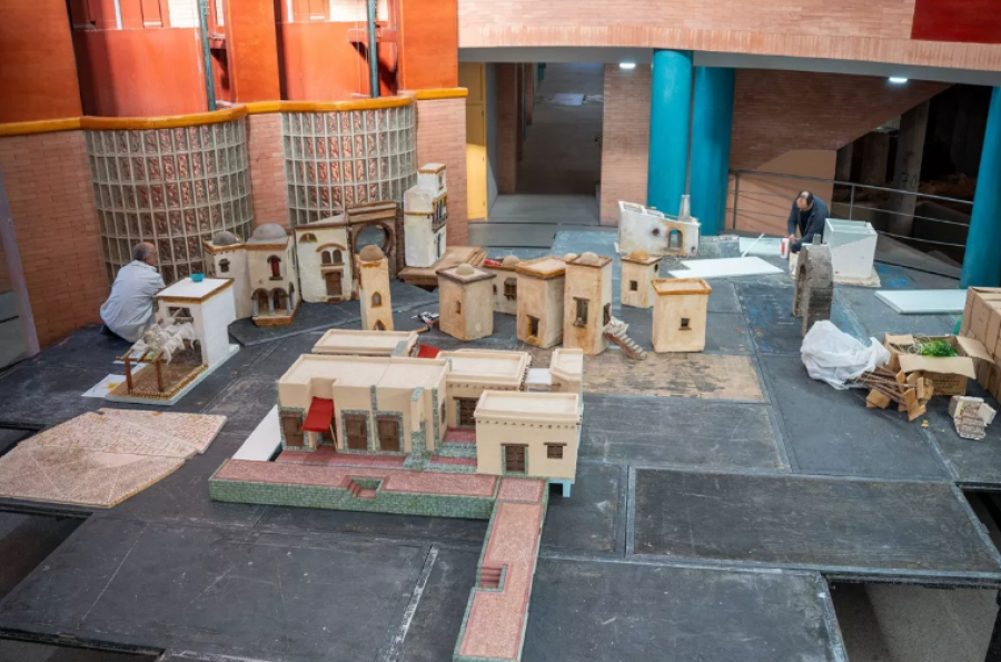 El belén, que cuenta con 125 figuras, estará instalado en la rotonda del Centro Cultural Alcazaba y se inaugurará a principios del mes de diciembre y contará con algunas novedades importantes con respecto a otras ediciones que ya pueden apreciarse en las tareas de montaje.