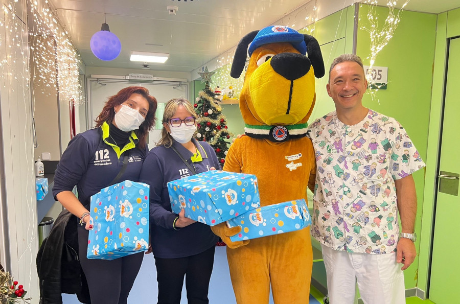 Panchito, el perro del 112 Extremadura, lleva regalos a los niños ingresados en el hospital