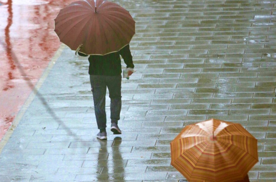 Gente en la calle en un día lluvioso. (A. COSLADA)