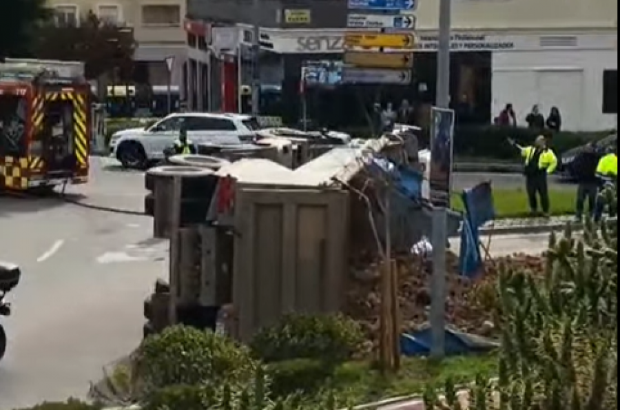 El camión circulaba en dirección a Portugal cuando, al tomar la glorieta, la carga se habría desplazado, provocando que el vehículo quedara volcado lateralmente sobre la calzada. Parte de los áridos y la tierra transportados quedaron esparcidos sobre el asfalto y zonas próximas.