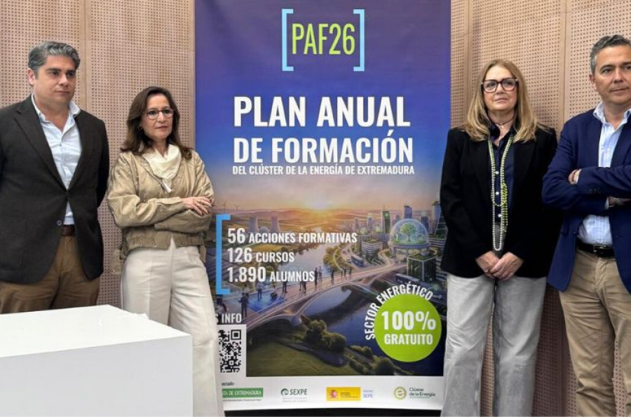 La Junta de Extremadura ha presentado el II Plan de Formación Anual del Clúster de la Energía de Extremadura (PAF26), una iniciativa que refuerza la apuesta del Ejecutivo regional por un modelo de desarrollo basado en la especialización profesional y el empleo de calidad.