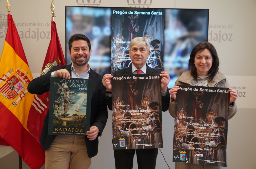 La presentación oficial del pregonero se ha celebrado este viernes, 6 de marzo, en el Ayuntamiento de Badajoz, en un acto en el que han participado el concejal de Cultura, José Antonio Casablanca, y la presidenta de la Agrupación de Hermandades y Cofradías de Badajoz, Laura García Alzás.