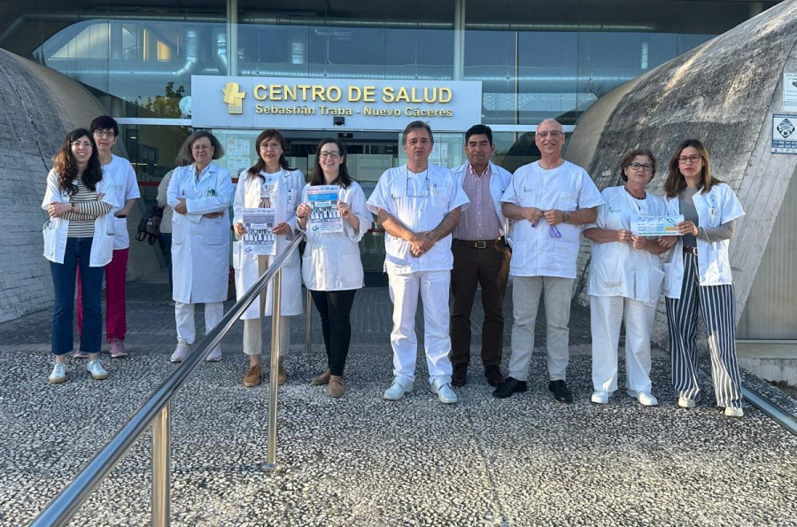 Médicos a las puertas de un centro de salud de Cáceres protestando.